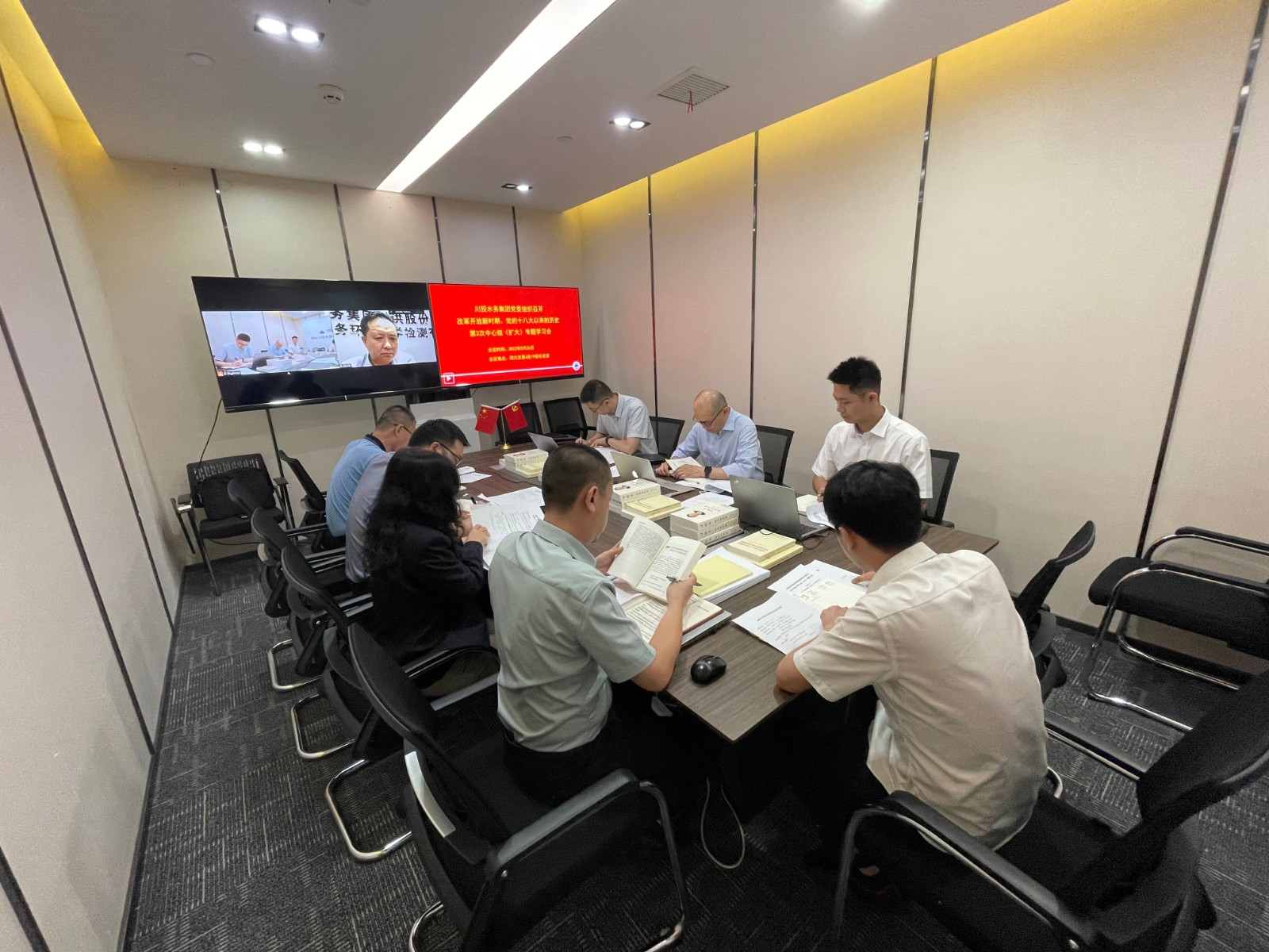 点点体育在线登录入口集团本部中层以上党员干部参加中心组(扩大)专题学习会。