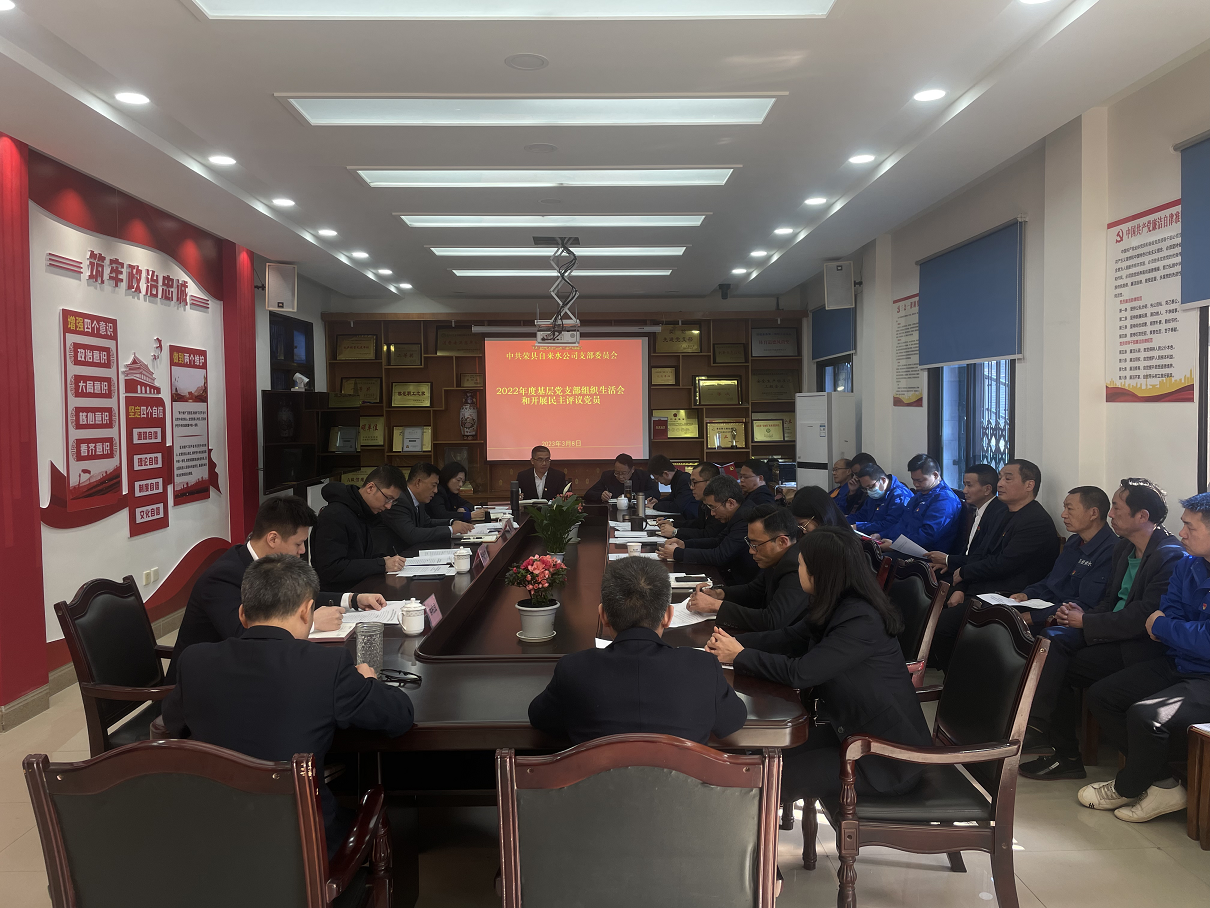 3月8日上午,根据点点体育在线登录入口集团党委《关于召开2022年度基层党支部组织生活会和开展民主评议党员的通知》(点点体育在线登录入口党委〔2023〕14号)文件要求,荣县水司党支部召开2022年度基层党支部组织生活会。点点体育在线登录入口集团党委委员、副总经理严斯亮到会督导。荣县水司党支部书记、执行董事、龚庆主持会议,全体党员共计27人参加会议。