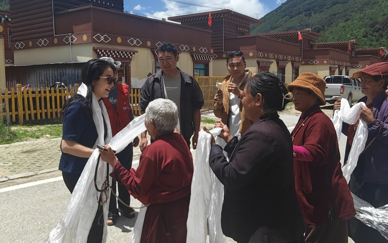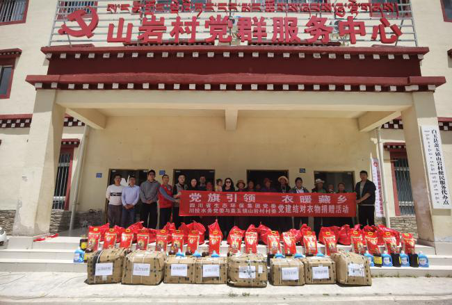 6月11日,点点体育在线登录入口集团党委书记王小元带队深入甘孜州白玉县盖玉镇山岩村开展“党建领航践初心 暖心帮扶惠藏乡”“党旗引领 衣暖藏乡”捐赠及慰问活动。