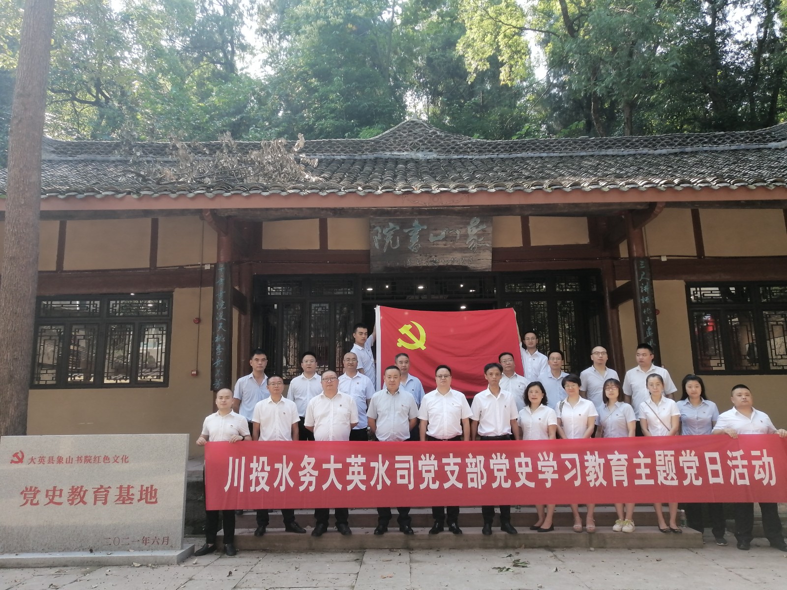 在象山书院,全体党员面向党旗,重温入党誓词,再一次回顾入党初心。随后在讲解员带领下,大家共同参观了象山书院红色文化党史教育基地。象山书院是大英县红色文化的传承地,是民主革命时期开国少将李汎山(李泛山)利用教师身份在大英境内建立的第一个党组织诞生地、解放战争时期川中游击纵队司令部所在地、中共地下党和民盟的秘商合作之地。象山书院红色文化党史教育基地内容主要由“革命星火闪耀川中”“坚持斗争百折不挠”“统一战线风雨同舟”“武装斗争迎接解放”“赤胆忠心矢志不渝”五个部分组成,用一段段文字、一张张图片、一件件实物,翻开风云激荡的红色篇章,回顾苦难辉煌的峥嵘岁月,讲述发生在这片红色热土上的革命故事,让红色基因在传承中焕发时代活力。