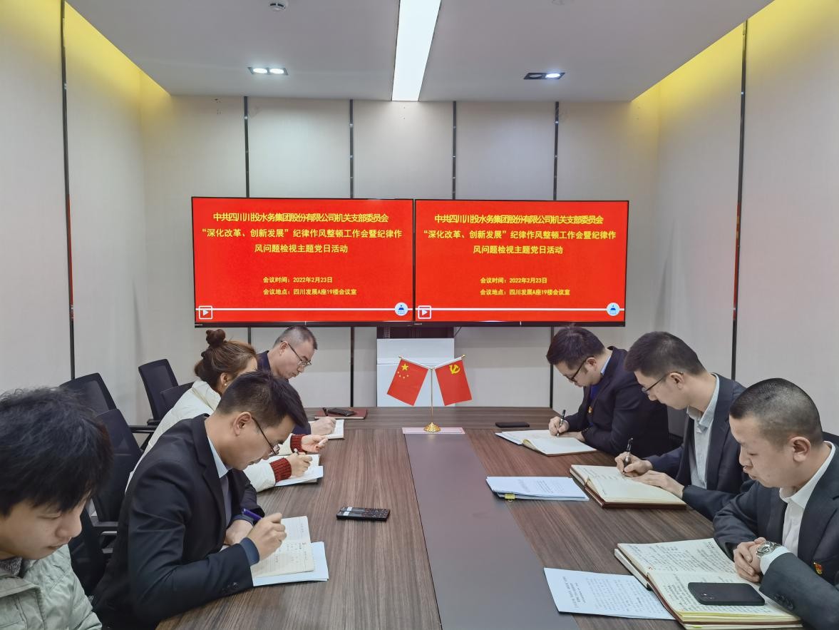 2022年2月23日,点点体育在线登录入口集团机关党支部为全面贯彻落实四川发展党委《关于开展“深化改革、创新发展”纪律作风整顿工作的通知》要求,进一步增强队伍凝聚力和战斗力,优化发展环境,切实助推企业实现高质量发展,机关党支部通过主题党日活动的形式,组织召开“深化改革、创新发展”纪律作风整顿工作会暨纪律作风问题检视会。
