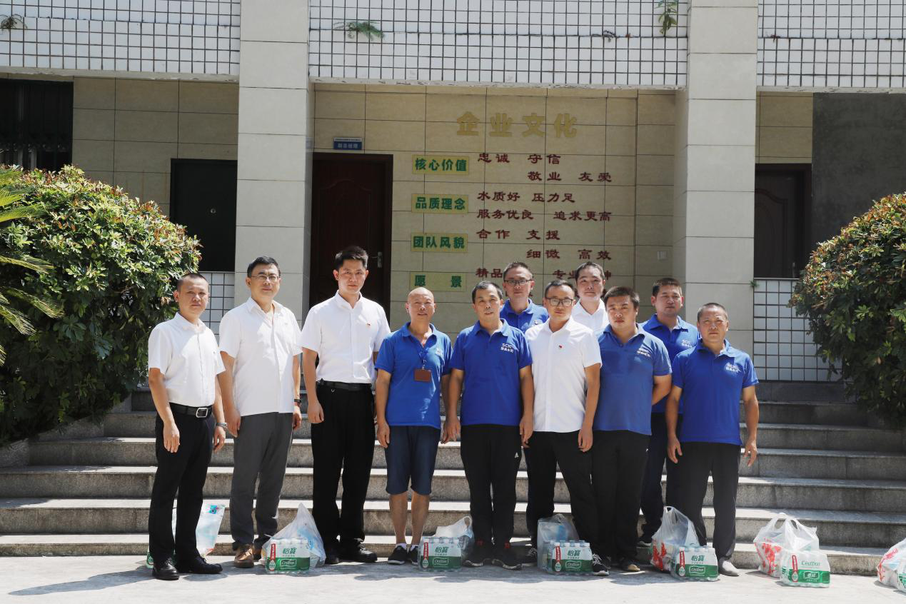 谭副总为荣县水司的一线员工送去了板蓝根、藿香正气液、金银花露等防暑降温药品,对他们不畏酷暑、坚守岗位的精神表示充分肯定。他强调道,当前夏季高温酷热,加之正值汛期,安全生产形势严峻,一定要警钟长鸣,做好防灾减灾、安全环保工作。加强值班值守,高标准、严要求抓好各项工作落实,全力确保供水生产安全。