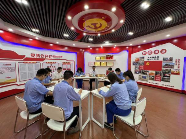 四川点点体育在线登录入口集团射洪水司始终坚持党建工作与生产经营工作同频共振,牢固树立起“抓党建就是抓发展,抓发展必须抓党建”的工作思路,明确部门职能职责,落实岗位责任制,健全党群相关制度,聚焦党员团员日常学习教育、读书研习、党建、企业文化展示、志愿服务活动等,依托楼层会议室、办公区域走廊、客户服务大厅打造“党群+学习”“党群+文化”“党群+服务”的多功能党群阵地,推动组织生活规范化,不断增强对党员干部队伍的教育引导,充分发挥党员干部“头雁”作用,激活基层党员队伍的内生动力。