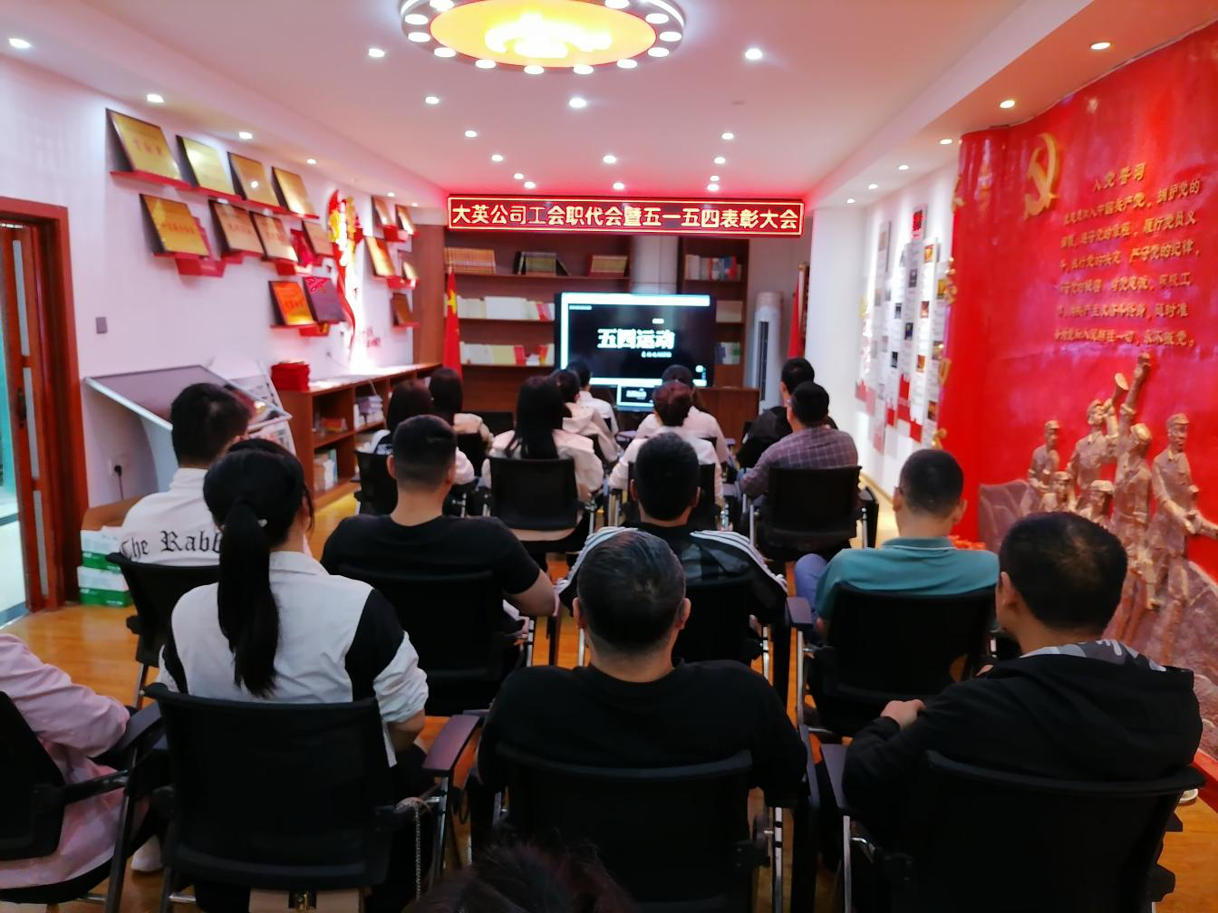 4月30日上午,为传承五四精神,宣扬劳模事迹,表彰先进鞭策后进,促进公司各项工作再创新高。大英水司工会在五楼党员活动室召开2024年职工代表大会暨五一·五四表彰大会。大英公司副总经理、工会主席王洪先主持。工会全体委员、职工代表、青年代表、受表彰先进个人30余人参加会议。