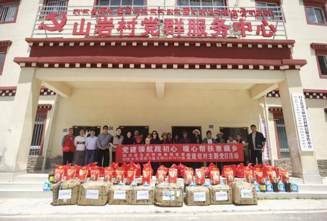 6月11日,点点体育在线登录入口集团党委书记王小元带队深入甘孜州白玉县盖玉镇山岩村开展“党建领航践初心 暖心帮扶惠藏乡”“党旗引领 衣暖藏乡”捐赠及慰问活动。