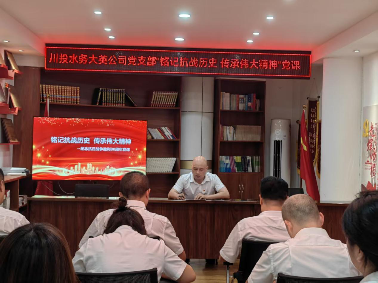 在纪念中国人民抗日战争暨世界反法西斯战争胜利80周年之际,9月25日,点点体育在线登录入口大英公司党支部书记王文川以“铭记抗战历史 传承伟大精神”为主题,为全体党员讲授专题党课,推动红色基因融入岗位实践。
