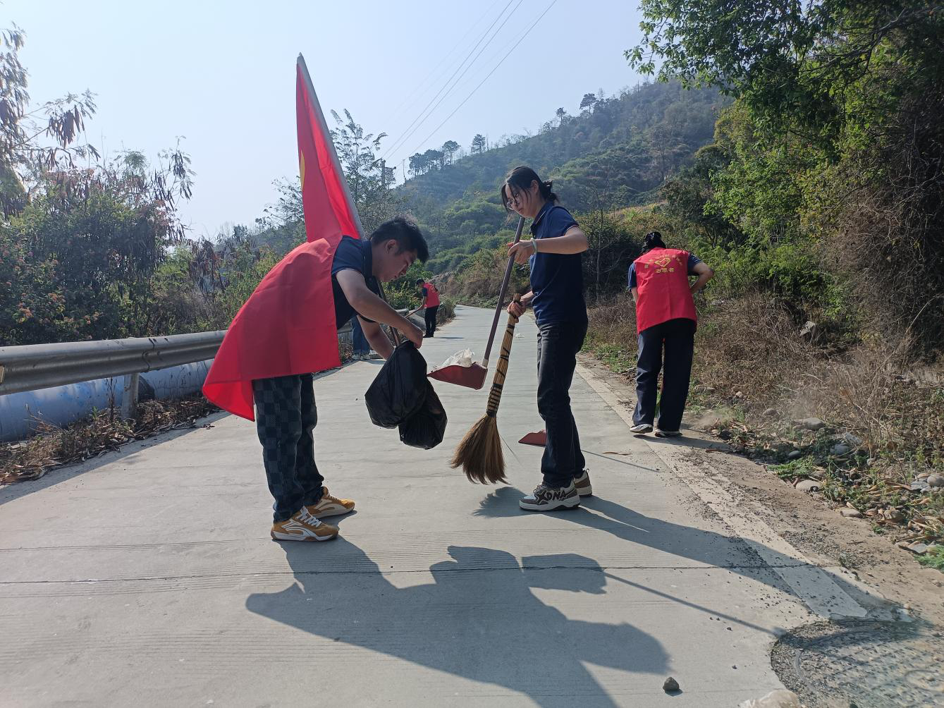 活动现场,公司党支部书记带领党员和职工,手持扫帚、铁铲、垃圾夹、环保垃圾袋等工具,对厂外道路两侧的白色垃圾、散落杂物以及厂区段河岸沿线的塑料瓶、食品包装袋、枯枝杂草等进行了全面、细致的清理。