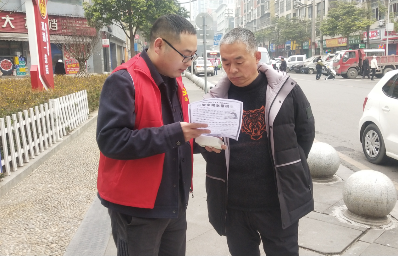 青年突击队积极响应,“志愿红”温暖了寒冬,在寒冷天气中点燃青春热情,展现新时代青年担当与力量。他们在人员集中处、广场等发放冬季安全用水宣传单,现场讲解安全用水常识以及冬季用水设施防冻保护知识,并通过知识问答和发放小礼物的方式,与群众进行互动,积极推广公司微信公众号平台,得到了群众的充分肯定。
