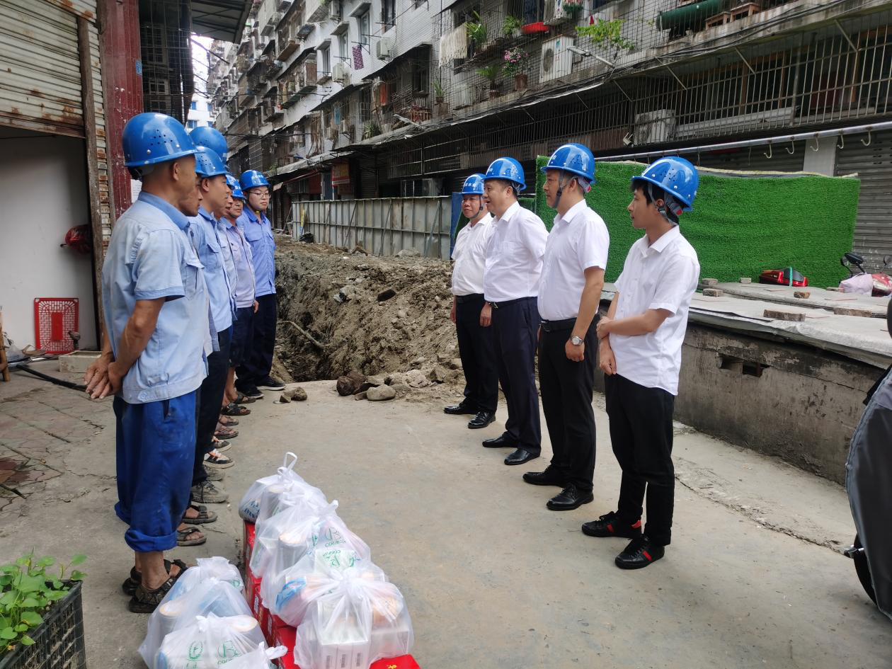 今年入夏以来,射洪市气温居高不下,一线工作者备受“烤”验。为了保障员工身体健康,确保安全生产,8月14日下午,点点体育在线登录入口集团公司党委委员、副总经理刘松果率队前往射洪水司红星路管网改造施工现场对作业员工进行夏日防暑降温送清凉慰问。