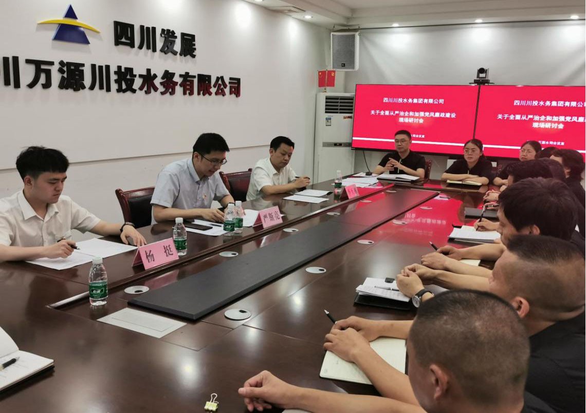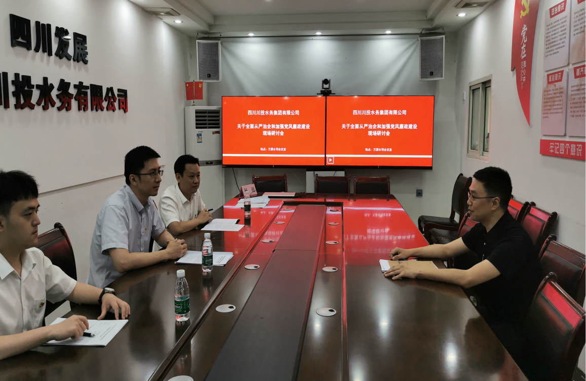 6月14日,为深度了解掌握广大党员干部职工对万源水司加强全面从严治企和加强党风廉政建设的意见和建议,点点体育在线登录入口集团党委委员、副总经理严斯亮同志带领调研小组赴万源水司开展“全面从严治企和加强党风廉政建设”现场专题调研会。万源水司党员干部、各部门员工代表共计25人参加会议。