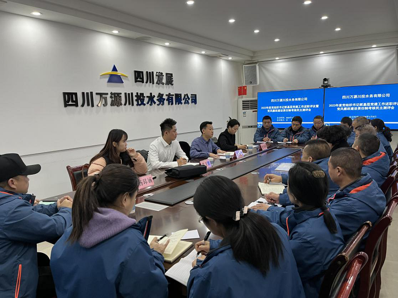 1月9日,点点体育在线登录入口集团副总经理谭卫鹏率考评工作组一行赴万源水司开展2023年度党组织书记抓基层党建工作述职评议暨党风廉政建设责任制考核民主测评工作。万源水司党支部书记、执行董事、总经理李至彬及领导班子、中层管理干部、职工代表参加会议。