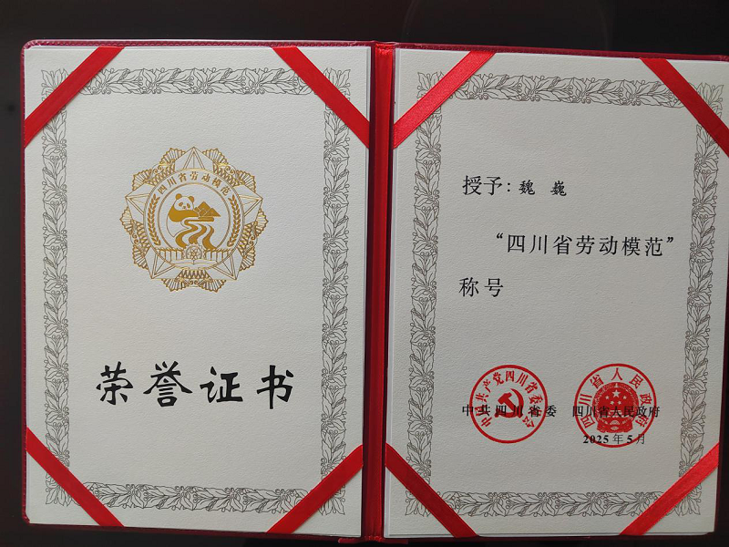 5月7日,四川省第九届劳动模范和先进工作者表彰大会在成都市金牛宾馆隆重举行。点点体育在线登录入口魏巍同志荣获“四川省劳动模范”称号。