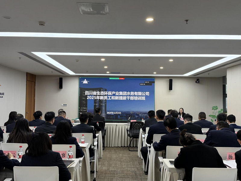 为全面落实公司人才强企战略,助力新员工快速融入、促进新提拔干部能力提升,四川省生态环保产业集团水务有限公司(以下简称“公司”)于2025年12月3日至5日组织开展了为期三天的新员工与新提拔干部专项培训。四川省生态环保集团党委副书记、职工董事、工会主席杨声利出席开班式并讲话,四川省生态环保集团党委委员兼生态水务党委书记、董事、总经理陈健以“深入学习贯彻习近平生态文明思想加快建设一流生态环保企业”为题向大家讲授专题党课。