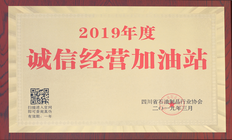 诚信比黄金更重要。2019年3月,从四川省石油制品行业协会全省先进表彰暨诚信经营加油站授牌大会上传来捷报:宏源气司加油站被授予“诚信经营加油站”光荣称号。