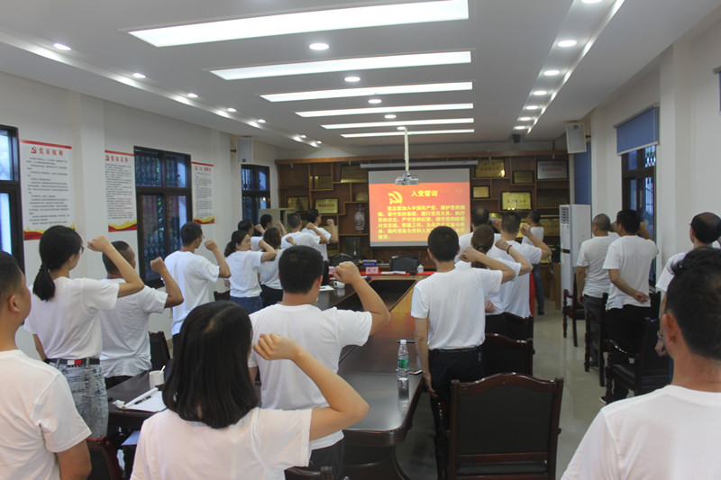 会议在嘹亮雄壮的《国际歌》中拉开帷幕,全体参会人员面对党旗庄严肃穆。会上,两名被荣县水务局党组评为优秀共产党员的同志结合“不忘初心、牢记使命”主题教育、中国共产党成立98周年,给大家分享了工作感悟与个人心得体会。随后,全体党员起身立正,面对党旗重温入党誓词,由公司支部委员、计划财务部部长廖征领誓,整个会场庄严肃穆。