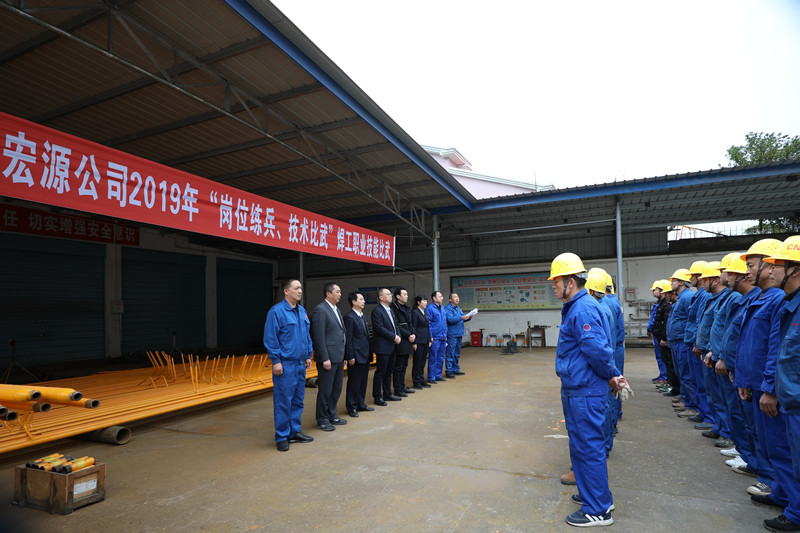2019年12月17日下午2:30分,宏源公司2019年度“岗位练兵·技术比武”焊工职业技能比武项目在宏源公司燃气管道加工坊举行。射洪市总工会党组书记、常务副主席吴烨莅临指导,宏源公司党委书记、总经理李旭东带领公司党委委员、班子成员出席活动。