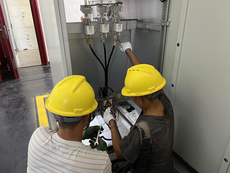 为全力应对高温“烤”验,切实保障高温环境下电气设施设备的安全使用,有效确保安全平稳供水。8月27日,点点体育在线登录入口射洪公司副总经理杜刚带队,会同安全监察部、生产部,组织维保单位四川麒能电力工程有限公司对公司厂区、取水口、西片区泵站等区域的用电设施设备和线路进行了专项检查。检查人员手持红外线测温仪,认真排查配电室内配电柜及重点线路的发热情况,对接线连接点进行细致检测并紧固处理,检查了绝缘手套等安全工器具的定期检测情况。