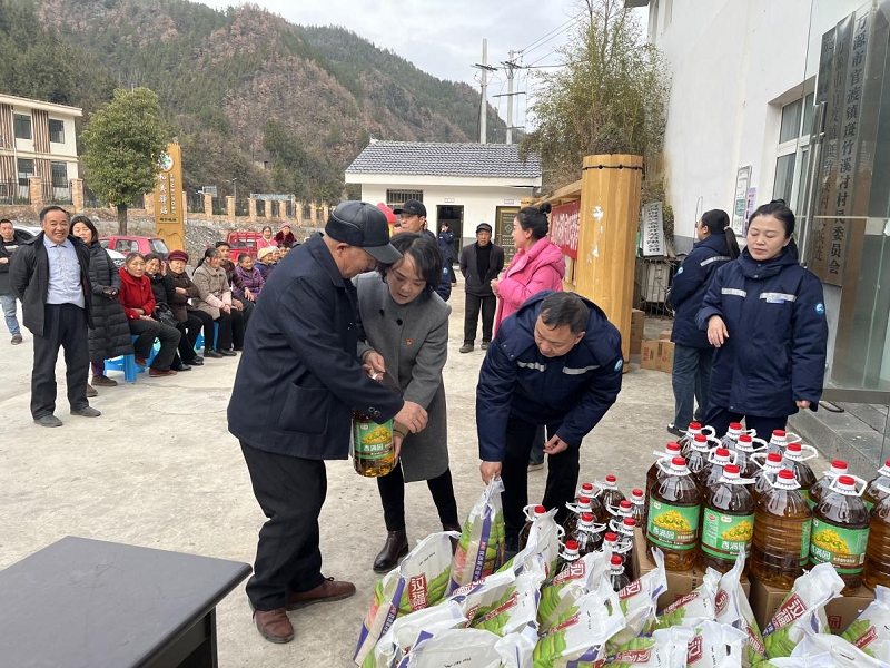 帮扶责任人一行深入斑竹溪村,走访慰问了55户困难群众,为他们送去了大米、油等生活必需品。在走访过程中,帮扶责任人与困难群众面对面沟通,心连心交流,详细询问了他们的生活状况、健康状况以及遇到的困难,鼓励他们坚定信心,自强自立,把企业的的温暖和关怀送到了困难群众的心坎上。慰问结束后,万源公司与村支两委、驻村工作组召开了座谈会,详细研讨了村情民意、农业发展等情况,完善了2025年帮扶工作计划,明确发展定位,扎实推进乡村全面振兴不断取得新成效。