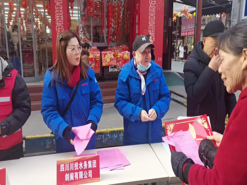 为积极配合剑阁县委、县政府“送文化、送科技、送卫生”三下乡活动。2025年1月12日,剑阁公司在普安镇开展了冬季安全用水知识宣传活动,向市民普及冬季安全用水知识,确保冬季供水设施的稳定运行。